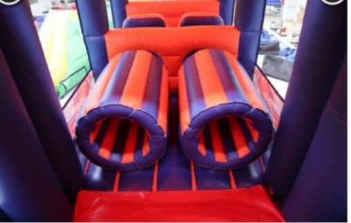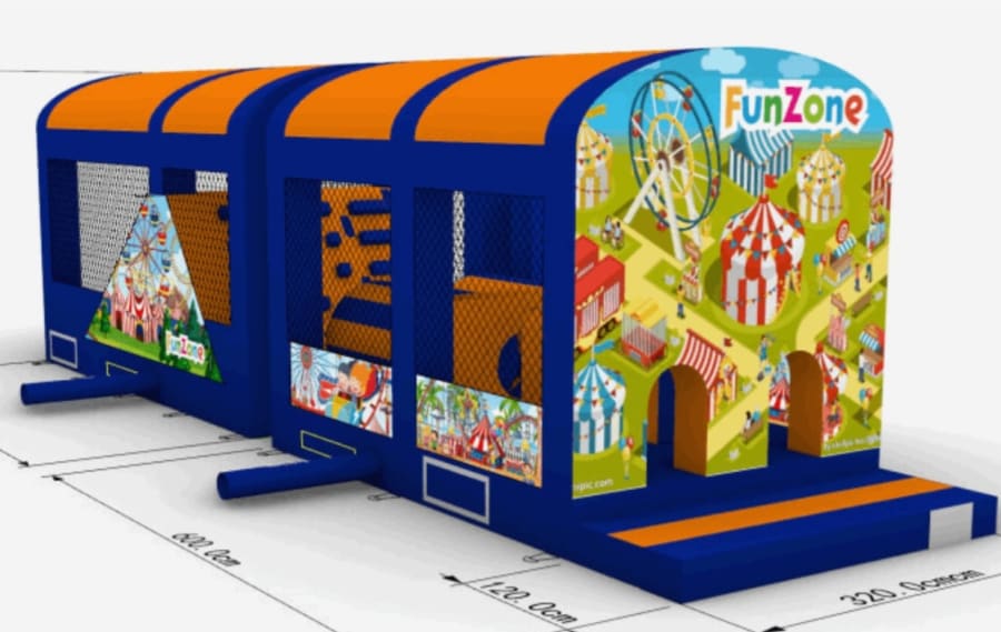 Get ready for an adrenaline-packed experience with our 42ftx10ft Funzone Assault Course with 9 ft Slide, the ultimate playground for adventure seekers! Perfect for birthday parties, communions, and confirmations, this massive inflatable course promises endless fun and excitement for all ages. 🌟